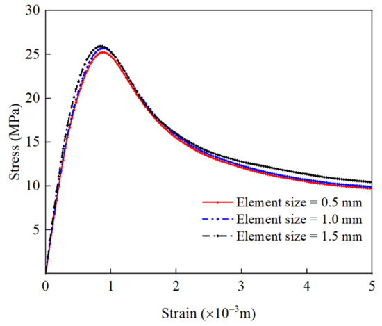The effect of the mesh size on the stress–strain curve of RAC under uniaxial compression.