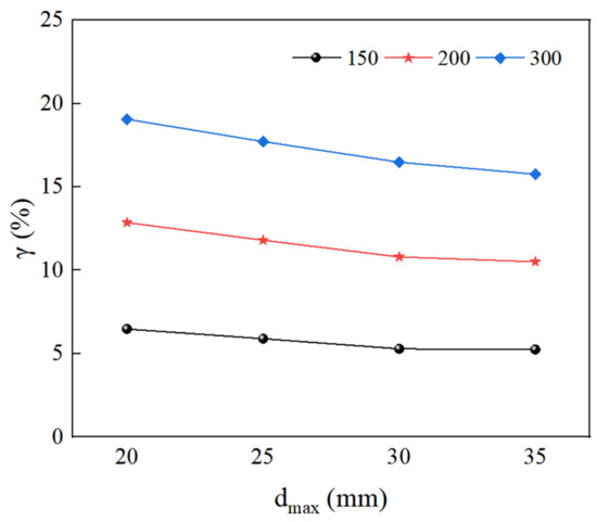 Step 2. Based on the Fuller grading curve [53] and the Walraven formula [54], the aggregate distribution and quantity of each particle size are determined. The Fuller gradation curve is combined into the continuous gradation ratio of the minimum void according to different proportions to make the concrete achieve the maximum compactness. The theoretical formula is as follows.