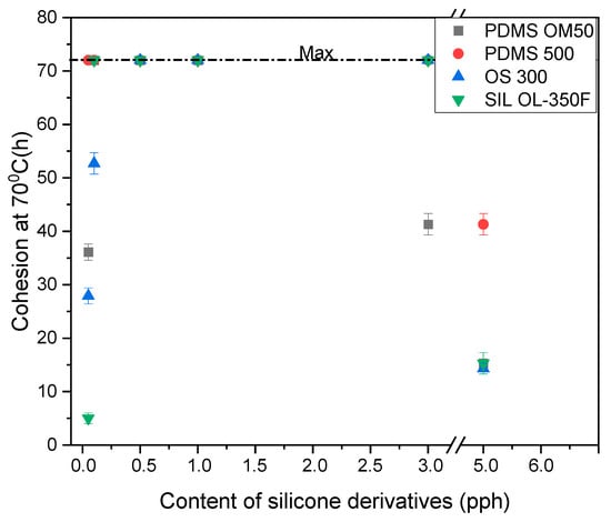 - Antosik, A.K.; Mozelewska, K.; Piątek-Hnat, M.; Czech, Z.; Bartkowiak, M. Silicone pressure-sensitive adhesives with increased thermal resistance. J. Therm. Anal. Calorim. 2021, 147, 7719–7727. [Google Scholar] [CrossRef]