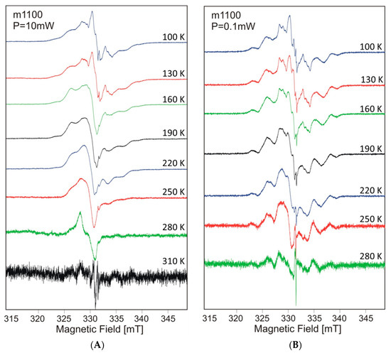 Thus, the signal of the irradiated XLPE is a superposition of several signals, deconvolution of which is difficult, but the intensity of the characteristic signal components that are least obscured by other signals can be used as an indicator of the content of individual radicals. In previous studies, it was determined that the most favourable conditions for the observation of carbon-centered radicals are in low microwave (MW) powers (0.1 mT), while peroxy radical (POO•) signals are pronounced at higher (10 mW) MW powers, due to partial saturation of carbon-centered signals [