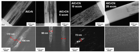 - Tang, J.-F.; Lin, C.-Y.; Yang, F.-C.; Tsai, Y.-J.; Chang, C.-L. Effects of nitrogen-argon flow ratio on the microstructural and mechanical properties of AlCrN coatings prepared using high power impulse magnetron sputtering. Surf. Coat. Technol. 2020, 386, 125484. [Google Scholar] [CrossRef]
