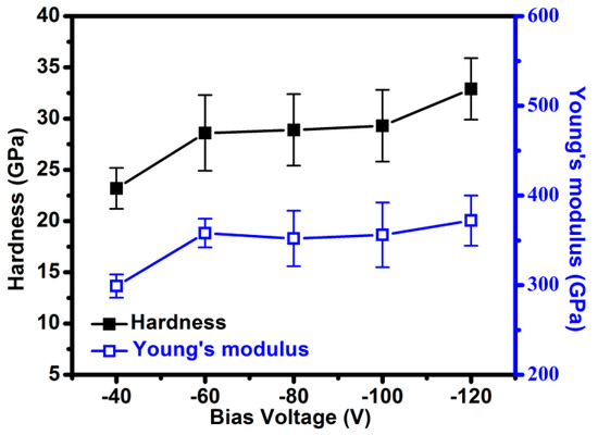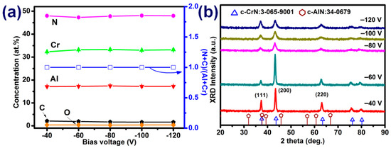 - Tang, J.-F.; Lin, C.-Y.; Yang, F.-C.; Chang, C.-L. Influence of nitrogen content and bias voltage on residual stress and the tribological and mechanical properties of CrAlN films. Coatings 2020, 10, 546. [Google Scholar] [CrossRef]