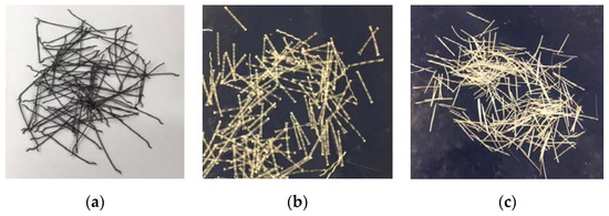 Fibers used: (a) steel, (b) polymer, (c) glass.