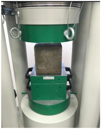Sample during compressive strength test.