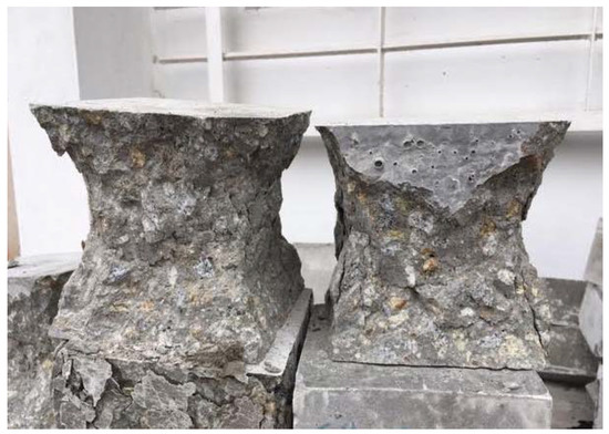 Concrete samples after compressive strength test.