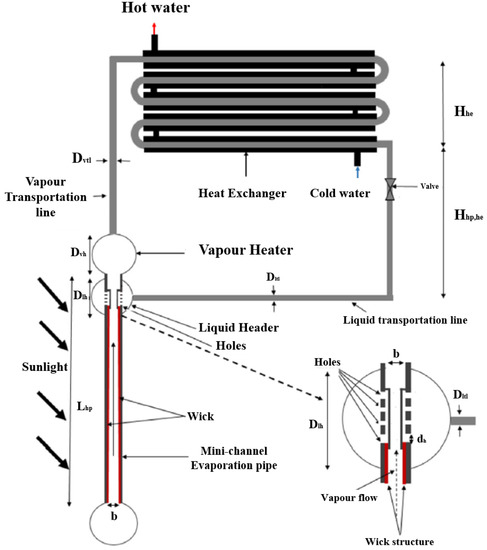 - Wang, Z.; Yang, W. A review on loop heat pipe for use in solar water heating. Energy Build. 2014, 79, 143–154. [Google Scholar] [CrossRef]