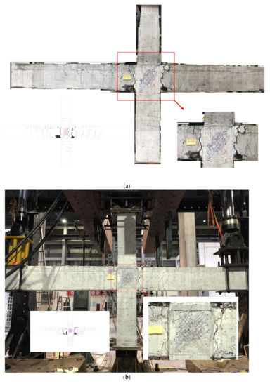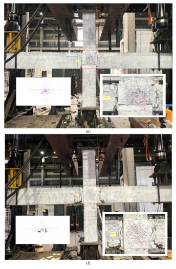 The whole process of loading could be roughly divided into four stages, that is, (a) cracking stage; (b) yielding stage; (c) peak stage; (d) ultimate stage. The direction is defined as positive for discussion convenience when the two actuators move oppositely causing the joint to rotate clockwise.