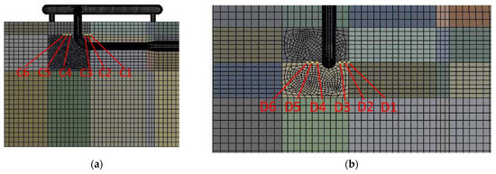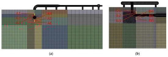 In this paper, the above-ground pipeline and buried pipeline after the last level of pressure regulation were selected for modeling. Huang et al. [27] found that the finite element calculation method can better consider the factors of pipe–soil interaction when studying the pipe–soil interaction of river-bank pipeline, and the calculation results are in good agreement with the actual situation. The model also refers to the model established by Wu et al. [28] in studying the stress and deformation of buried oil pipelines in permafrost regions. In order to validate the rationality and reliability of the simulation, the simulation strain values at the same position were extracted for comparison (see Section 4.2.2). By comparing the measured values with the simulated values, the feasibility of the simulation is illustrated.
