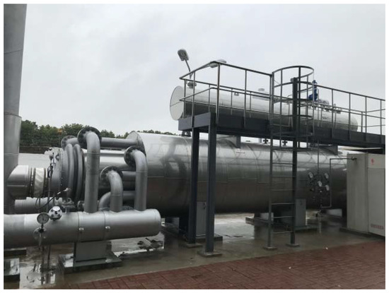 A 60 × 104 Nm3/h natural gas hot water heating furnace was set up in the heating furnace system of the high-pressure regulator station to meet the final heating load. In addition, natural gas was used as the fuel gas, and the gas pressure was lower than 0.4 MPa. The gas consumption was adjusted according to the daily transmission capacity of the high-pressure regulator station. The site diagram is shown in Figure 25.