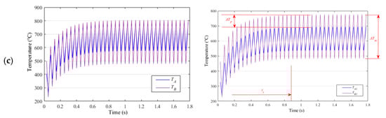| Subcases (s) | Temperature Difference between A1 and B1 (℃) | Max. Temperature at A (℃) | Max. Temperature at B (℃) | Half-Width Experiencing Thermal Cycle above 400 ℃ (mm) | Total EPT (s) |