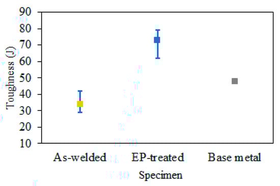 - Chen, Z.L.; Xiong, Y.F.; Li, X.W. Eliminating the brittleness constituent to enhance toughness of the high-strength steel weld heat-affected zone using electropulsing. Materials 2022, 15, 2135. [Google Scholar] [CrossRef]
