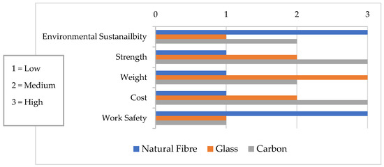 Economic, strength, and environmental comparison between natural and synthetic fibres [35,36].