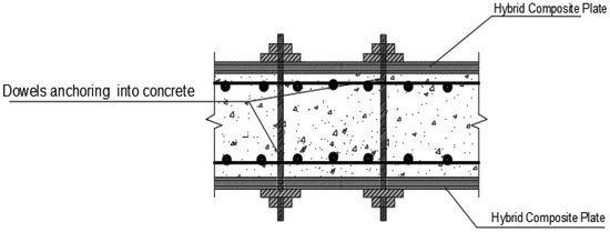 It is true that natural fibres have flaws that must be overcome to compete with glass and carbon. Glass fibres outlast and outperform natural fibres in terms of durability and strength [37]. However, the use of high-strength naturally occurring fibres in the form of a laminate has been proven to be a more ecologically friendly and cost-effective alternative than the use of synthetic fibres for retrofitting and improving the structural integrity of the structure. Structural retrofits employ on-site or pre-cured natural fibre reinforced polymer (NFRP) laminates [32,38,39]. Due to their ease of handling, textiles consisting of woven natural fibres (fabrics) are frequently used in the manufacture of laminates. To begin with, preparation of the concrete surface by using a water jet at high pressure to eliminate any weak spots is done [40]. These textiles are put on in layers on the surface of the prepared concrete. A suitable quantity of resin is added prior to and following each fabric layer to ensure that the fibres are fully saturated with resin and that the laminate has no air pores. In this scenario, estimating the laminate’s strength capability is problematic since the exact amount of resin used is unknown. Pre-cured NFRP laminates are formed in a mold, which allows for a broader range of fibre forms than previous methods (single fibres, fibre ropes, and woven). Curing the laminate is carried out independently of strengthening the structural component. After applying the laminate to the structural component and allowing it to dry, it is glued together. While pre-cured laminate production is more precise than built-up laminate manufacturing on-site, the built-up laminate methodology is more versatile. It may be wrapped in a number of ways around RC beams and slab soffits, and with other reinforced concrete structural elements [32].