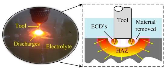 - Kumar, N.; Mandal, N.; Das, A.K. Micro-machining through electrochemical discharge processes: A review. Mater. Manuf. Process. 2020, 35, 363–404. [Google Scholar] [CrossRef]