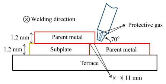 To accomplish the goal of green development, energy conservation, and emission reduction, lightweight components are increasingly used in rail transit and other manufacturing fields [1]. As a new generation of advanced high-strength steel, dual-phase steel has higher strength and better toughness than traditional high-strength steel [2,3,4,5]. In the field of automobile manufacturing, dual-phase steel is used instead of conventional high-strength steel to manufacture automobile chassis, brackets, and control arms, which not only makes the automobile have a stronger anti-impact ability but also reduces the weight of the automobile by 10–20%. Therefore, dual-phase steel is one of the ideal structural materials in the modern industry [6,7,8]. Although dual-phase steel has good welding performance, the welded components with good forming effect cannot be produced by using the traditional tungsten inert gas (TIG) and melt inert gas (MIG) welding process. As a new and improved MIG connection technology, cold metal transfer (CMT) has the welding characteristics of low heat input and no spatter after welding. It can solve some welding defects in traditional fusion welding and has a broad application prospect in the field of dual-phase steel sheet welding [9,10,11,12]. Therefore, the combination of advanced welding technology and high-strength dual-phase steel can solve the problems of low welding quality and poor forming in practical production. It can further promote the broad application of dual-phase steel in the modern automobile manufacturing industry.