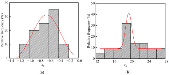 Frequency distribution histograms of x0 in the steelworks: (a) Ingot casting bay; (b) Billet bay.