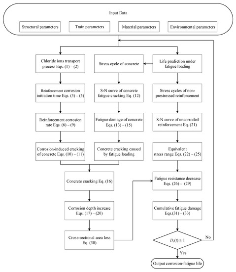 - Cui, C.; Song, L.; Liu, J.; Yu, Z. Corrosion-fatigue life prediction modeling for RC structures under coupled carbonation and repeated loading. Mathematics 2021, 9, 3296. [Google Scholar] [CrossRef]
