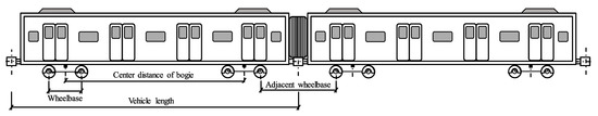 The axle load and wheelbase of metro trains are the main factors affecting the safety performance of bridges. The urban rail transit viaduct operates the B-type metro vehicle, which is a six-carriage train, and the axle weight of the train is 14 t. Figure 4 depicts the axle diagram of the B-type metro vehicle. The B-type metro vehicle has a length of 19 m, a center distance of 12.6 m, a wheelbase of 2.2 m, and an adjacent wheelbase of 4.72 m [56]. When evaluating the corrosion-fatigue life of the U-shaped beam, the train load is simplified as a moving concentrated load passing through the U-shaped beam. The load effect of the midspan section under the moving train load is calculated by the influence line method.