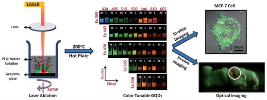 - Kang, S.; Ryu, J.H.; Lee, B.; Jung, K.H.; Shim, K.B.; Han, H.; Kim, K.M. Laser wavelength modulated pulsed laser ablation for selective and efficient production of graphene quantum dots. RSC Adv. 2019, 9, 13658–13663. [Google Scholar] [CrossRef]