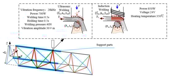 Large truss structures used for in-space service are usually non-disassembled structures, so their connection processes are usually chosen as non-disassembled. Considering the constraints on the applicability of in-space joining processes between materials, ultrasonic welding and induction welding have a high potential for in-space joining applications due to their low power consumption, low force, low thermal disturbance and low dependence on the space environment, and no need for additional connectors.