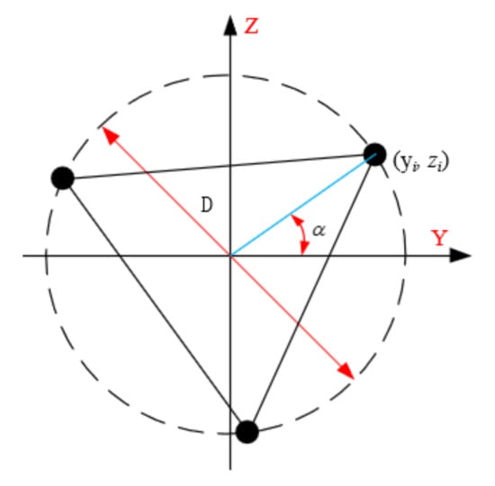 where A is the total cross-sectional area of the chord; is the angle between the center of the ith chord section and the center of the truss section and the Y-axis; D is the diameter of the outer circle of the truss section; is the distance between the center of the ith chord and the Z-axis; is the angle between the center of the first chord section and the center of the truss section and the Y-axis; and is the moment of inertia of the chord section about the Y-axis and the Z-axis.
