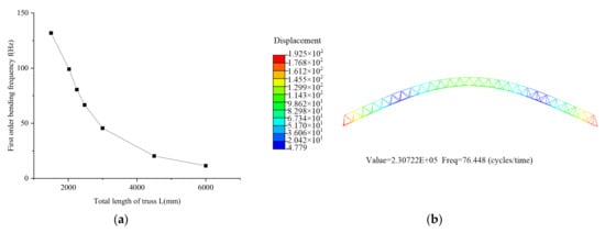 Effect of truss length on fundamental frequency: (a) Simulation comparison curve; (b) Simulation results.