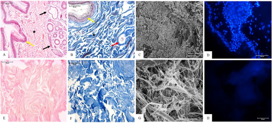 - Martins, A.R.; Matias, G.S.S.; Batista, V.F.; Miglino, M.A.; Fratini, P. Wistar rat dermis recellularization. Res. Vet. Sci. 2020, 131, 222–231. [Google Scholar] [CrossRef]