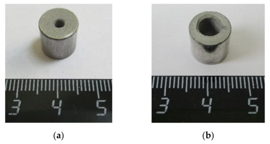 Figure 1. Ni-Al powder cylindrical samples: (a) for ampoule No. 1; (b) for ampoule No. 2.