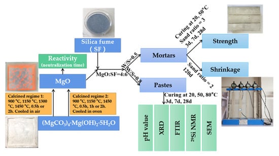 - Li, Z.; Xu, Y.; Zhang, T.; Hu, J.; Wei, J.; Yu, Q. Effect of MgO calcination temperature on the reaction products and kinetics of MgO–SiO2–H2O system. J. Am. Ceram. Soc. 2019, 102, 3269–3285. [Google Scholar] [CrossRef]