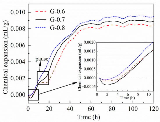 Chemical expansion of G-0.6, G-0.7, and G-0.8 during 0–120 h.