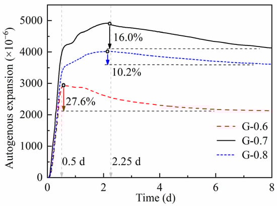 Autogenous expansion of G-0.6, G-0.7, and G-0.8 during 0–8 d.
