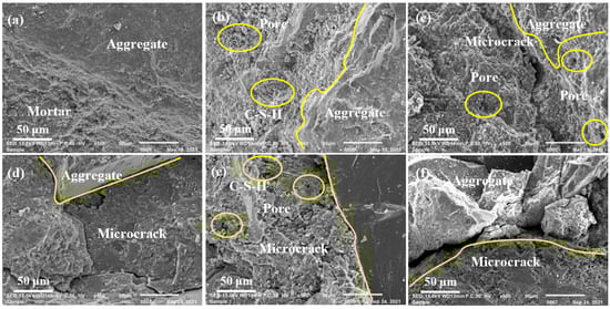 Frost heave stress caused by F-T cycles repeatedly acted on the interior of NAC. When the stresses exceeded the tensile strength limit of NAC, cracks occurred in the internal structure of NAC, and cracks further expanded until F-T failure [39].