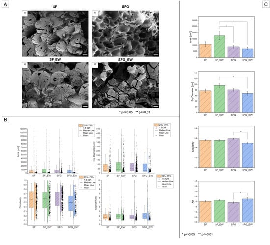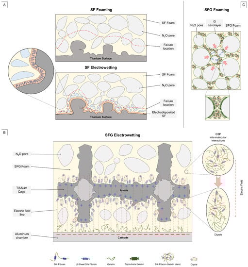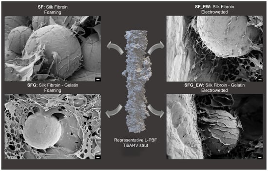 - SFG_EW: L-PBF titanium cage + electrowet foam with 5% silk fibroin–gelatin.