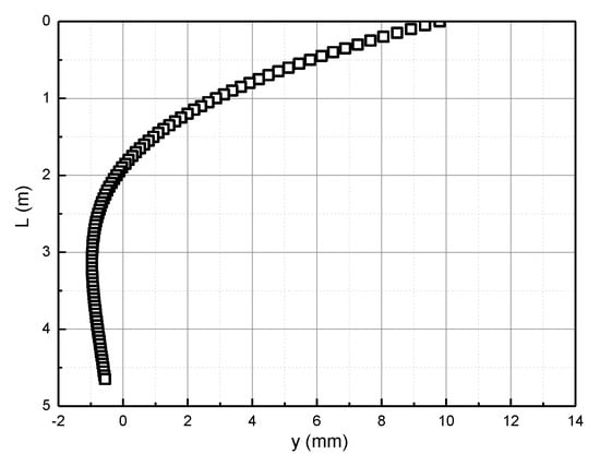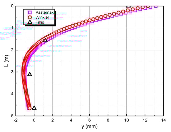 The obtained compression modulus is substituted into the Pasternak foundation model, and then the horizontal deformation curve of the pile foundation is obtained according to MATLAB programming. According to the pile foundation size and load in the calculation example verification, the distribution of the horizontal deformation of the pile body along the pile length is obtained, as shown in Figure 5.