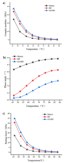 | GO/RP Composite-modified Asphalt | lg(G*/sinδ) = −0.0435T + 3.538 | 0.9974 |