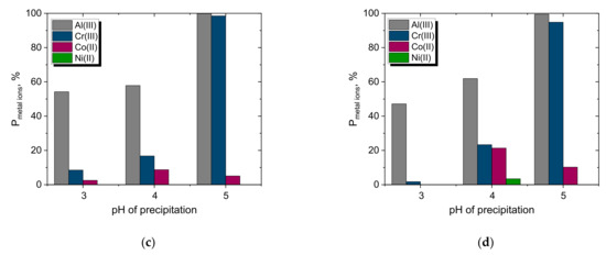 where —the initial mass of metal ions in the aqueous phase, mMe_a—the mass of metal ions in the aqueous phase after precipitation.