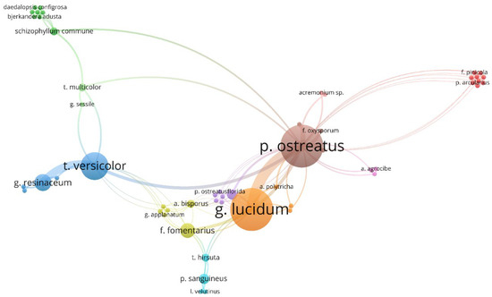 It results from Figure 7 that two fungus, Pleurotus ostreatus (mentioned in 22 documents) and Ganoderma lucidum (mentioned in 20 documents), are most frequently mentioned in scientific publications. Another commonly used species is Trametes versicolor (10 times). P. ostreatus and G. lucidum are the most frequently compared species. All these species cause white rot. A detailed list of fungus species, substrates, technological parameters, research aims, and main findings based on almost 100 original articles is given in Appendix A.