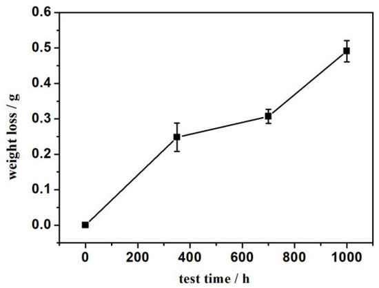 - With the extension of the bench test time, weight loss increased. The maximum weight loss occurs 1000 h after worn, which is about twice that of 350 h.