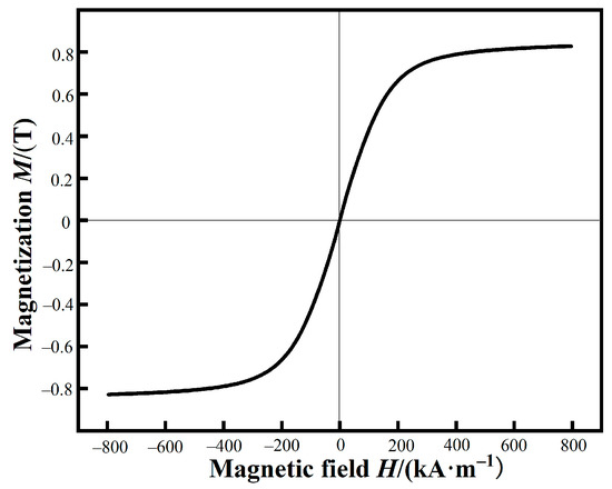 The hysteresis loop of FeSiBCCr amorphous powders measured by VSM are shown in Figure 5. The Ms of raw powders are 0.83 T. In our previous work, based on spark plasma sintering, FeSiBCCr bulk amorphous alloys with excellent soft magnetic properties were fabricated using the CA powders [5], which exhibited soft magnetic properties of the CA powders and facilitated the fabrication of high-performance MPCs.