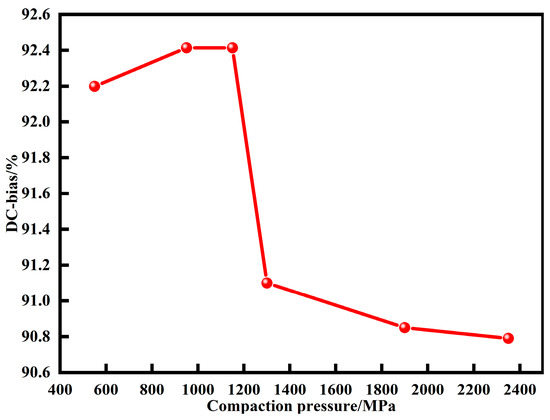 DC bias of MPCs under different compaction pressures (DC magnetic field is 71.25 Oe).