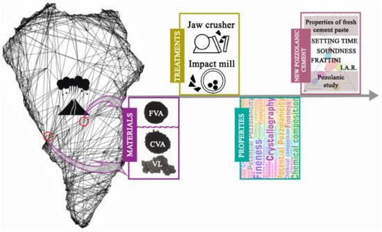 - Játiva, A.; Ruales, E.; Etxeberria, M. Volcanic Ash as a Sustainable Binder Material: An Extensive Review. Materials 2021, 14, 1302. [Google Scholar] [CrossRef]