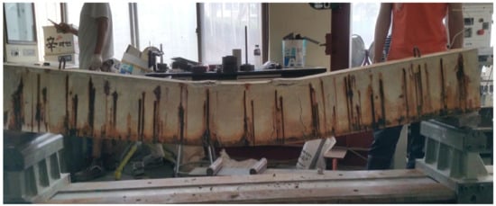 - Jung, J.S.; Lee, B.Y.; Lee, K.S. Experimental Study on the Structural Performance Degradation of Corrosion-Damaged Reinforced Concrete Beams. Adv. Civ. Eng. 2019, 2019, 9562574. [Google Scholar] [CrossRef]