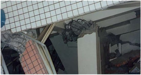 The world has experienced frequent earthquakes in recent years. The severe corrosion of RC structures in earthquake-prone areas will inevitably have an impact on their seismic performance and safety. As shown in Figure 3, the reinforcement corrosion of RC members significantly affects the deterioration of structural performance caused by earthquakes, that is, seismic performance, as demonstrated by past earthquakes such as the 1995 Kobe Earthquake (Japan, M = 7.3), the 1999 Jiji Earthquake (Taiwan, M = 7.3), the 1999 Izmit Earthquake (Turkey, M = 7.4), the 2008 Sichuan Earthquake (China, M = 8.0), the 2010 Chile Earthquake (M = 8.8), the 2012 Great East Japan Earthquake (M = 9.0), the 2013 Lushan Earthquake (China, M = 7.0), and the 2016 Komamoto Earthquake (Japan, M = 7.0).