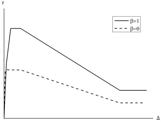 According to past studies [18,19,20,21,22,23,24], weakened bonding is highly related to the corrosion of reinforcements of RC members. This study used the model proposed by Eligehausen et al. [39], shown in Figure 19, as a steel reinforcement bonding model. Under this model, the bond stress-slip relationship is determined by: (1) an ascending non-linear branch; (2) a constant bond stress plateau; (3) a linearly declining branch; and (4) sustaining residual stress branch based on the bonding factor given in Equation (9).