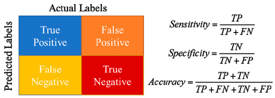 To determine the performance of the proposed indices precisely, the ability of the indicators to accurately estimate the insulator state taken from the data set of 952 tests observation was examined. The sensitivity, precision, and accuracy of these indices were calculated using the confusion matrix shown in Figure 16 during the assessment based on the naïve Bayes classification. The parameters of the confusion matrix were specified based on the insulator condition preparation. The decision of test results and proposed indices are defined as: