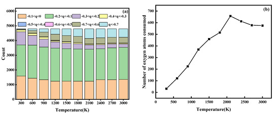 (a) The number of atoms with different charges at each temperature. (b) The effect of different temperatures on the degree of oxidation.