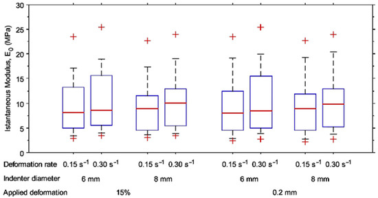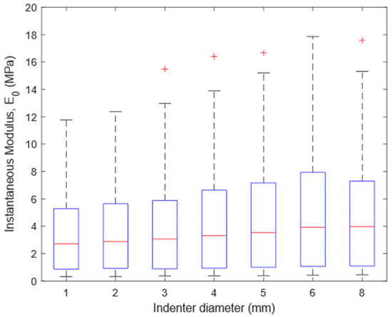 - Simha, N.K.; Jin, H.; Hall, M.L.; Chiravarambath, S.; Lewis, J.L. Effect of indenter size on elastic modulus of cartilage measured by indentation. J. Biomech. Eng. 2007, 129, 767–775. [Google Scholar] [CrossRef]