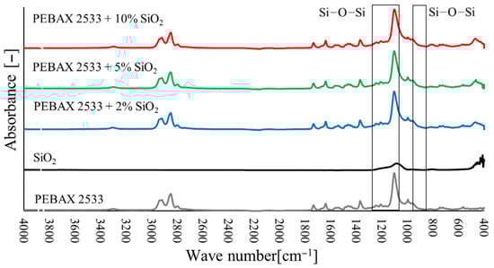 FTIR analysis of membranes containing SiO2 in different concentrations.