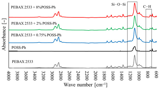 FTIR analysis of membranes containing POSS-Ph in different concentrations.