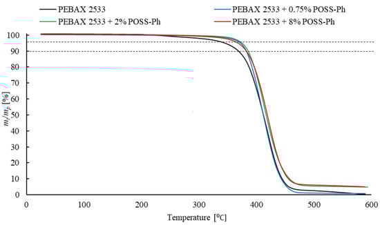 TGA analysis of membranes containing POSS-Ph in different concentrations.